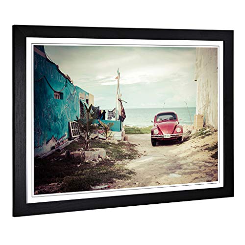 Big Box Art Framed Print of Vintage Beetle in Mexico Design | Wall Art Picture | Home Decor for Kitchen, Living, Dining Room, Bedroom, Hallway, Office, Black, A2 / 24.5x18 Inch / 62x45cm