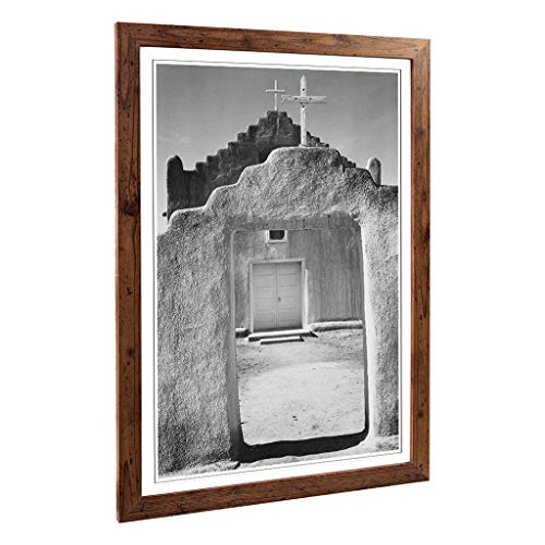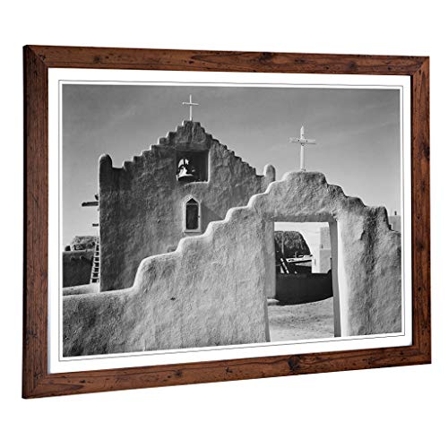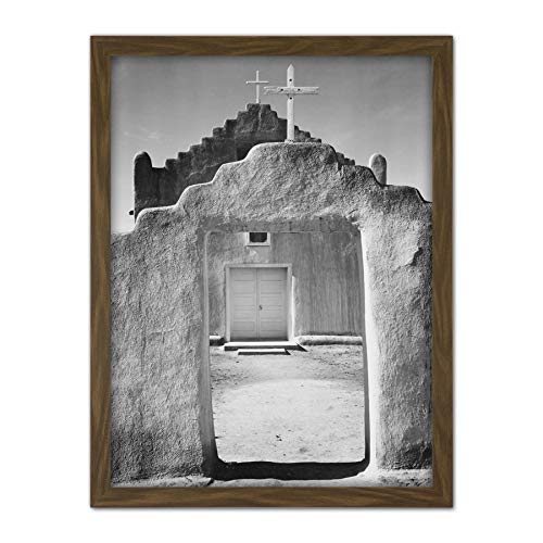 Big Box Art Framed Print of Ansel Adams Church inTaos Pueblo New Mexico Design | Wall Art Picture | Home Decor for Kitchen, Living Room, Bedroom, Hallway, Walnut, A2 / 24.5x18 Inch / 62x45cm