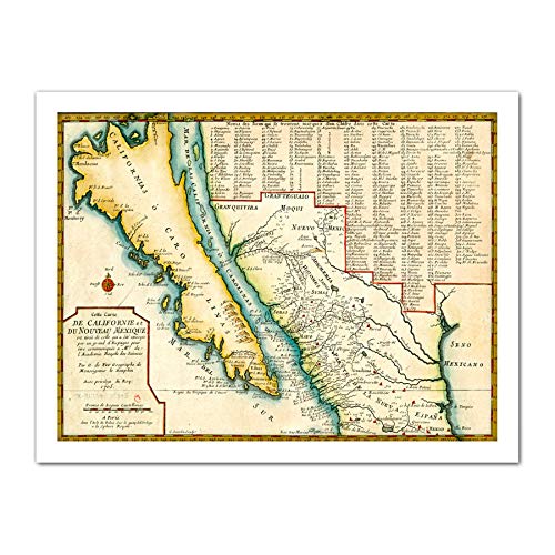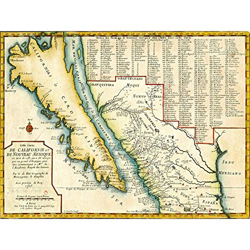 Artery8 Cette Carte California New Mexico 1705 Vintage Map Large Wall Art Poster Print Thick Paper 18X24 Inch