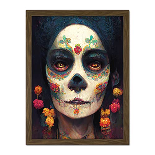 Doppelganger33 LTD Day Of Dead Woman Skull Mexico Artwork Framed Wall Art Print 18X24 Inch