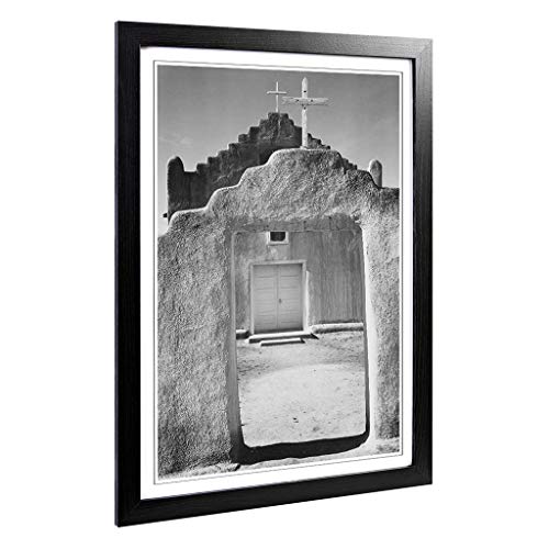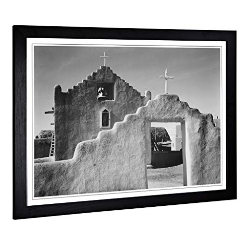 Big Box Art Framed Print of Ansel Adams Church inTaos Pueblo New Mexico Design | Wall Art Picture | Home Decor for Kitchen, Living Room, Bedroom, Hallway, Black, A2 / 24.5x18 Inch / 62x45cm