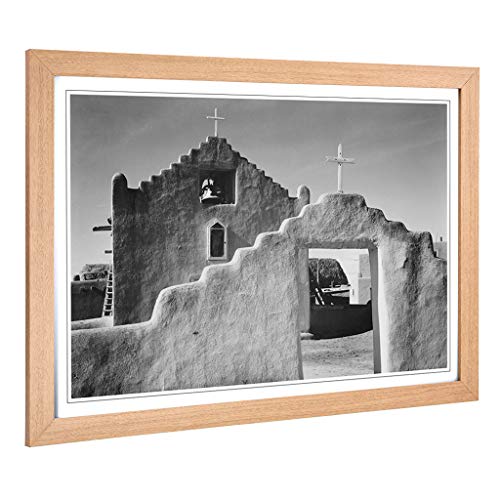 Big Box Art Framed Print of Ansel Adams Church inTaos Pueblo New Mexico Design | Wall Art Picture | Home Decor for Kitchen, Living Room, Bedroom, Hallway, Oak, A2 / 24.5x18 Inch / 62x45cm