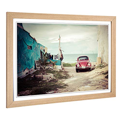 Big Box Art Framed Print of Vintage Beetle in Mexico Design | Wall Art Picture | Home Decor for Kitchen, Living, Dining Room, Bedroom, Hallway, Office, Oak, A2 / 24.5x18 Inch / 62x45cm