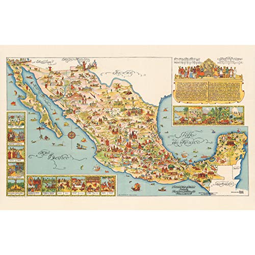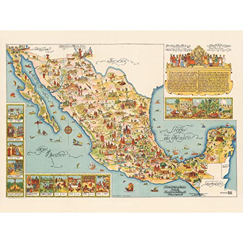 Artery8 Pictorial Map Of Mexico 1931 Vintage Large Wall Art Poster Print Thick Paper 18X24 Inch