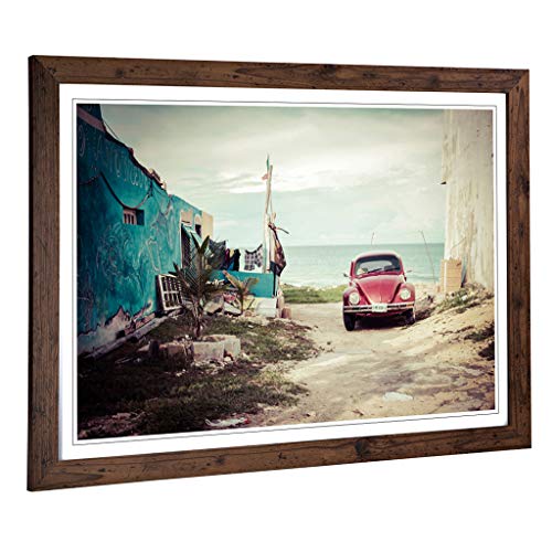 Big Box Art Framed Print of Vintage Beetle in Mexico Design | Wall Art Picture | Home Decor for Kitchen, Living, Dining Room, Bedroom, Hallway, Office, Walnut, A2 / 24.5x18 Inch / 62x45cm