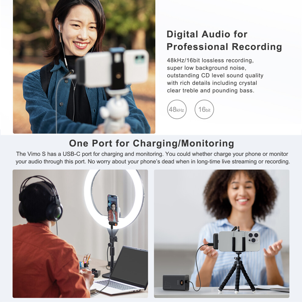Vimo S-MI Wireless Microphone System 200M Range with Charging Case, Dual Mic, Lightning & USB-C