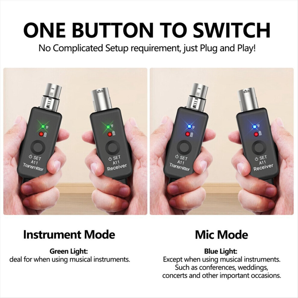 A11 Wireless Microphone Transmitter Receiver 2.4Ghz, XLR System, Mic Adapter for Audio Mi