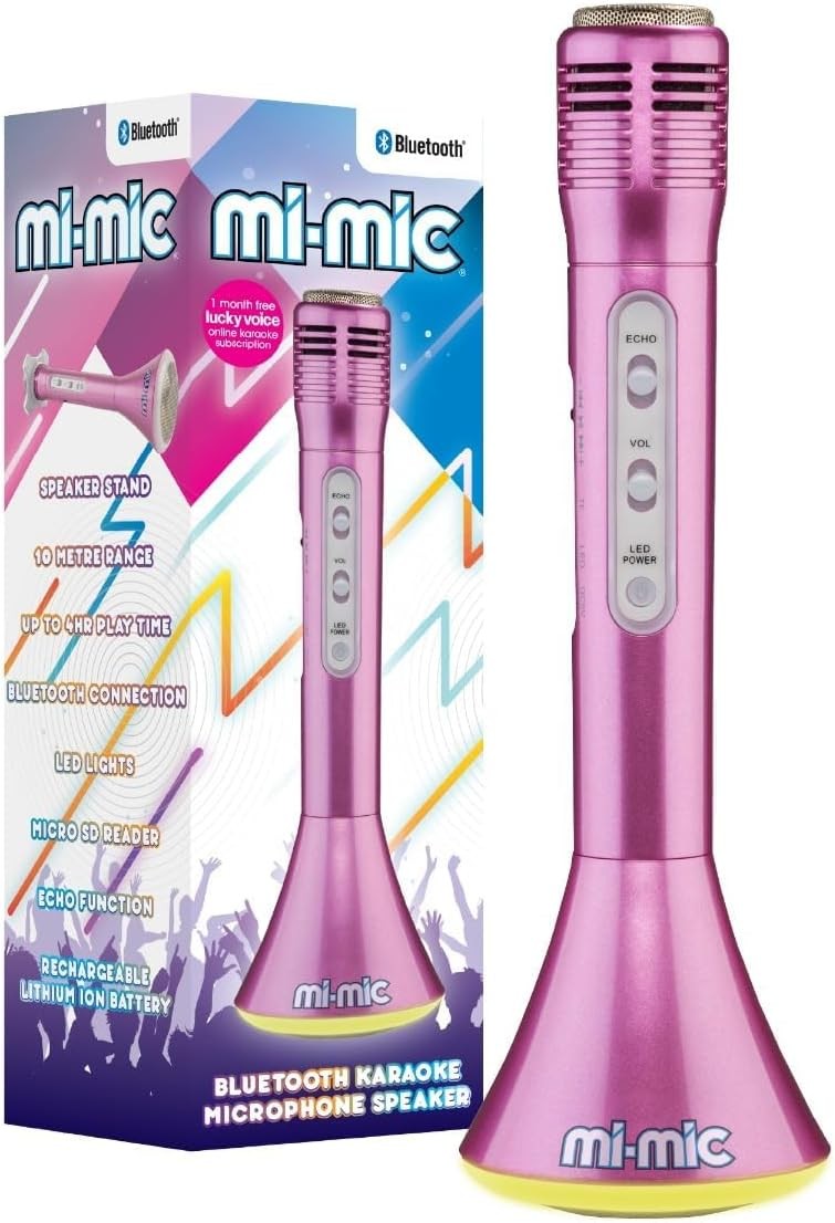 Mi-Mic Kids Karaoke Microphone, Wireless Speaker and LED Lights Pink