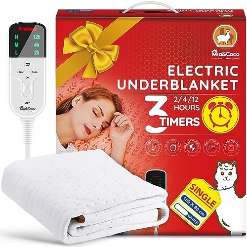 Mia&Coco Electric Heated Blanket Single, Heated Underblanket with 12hour Timers