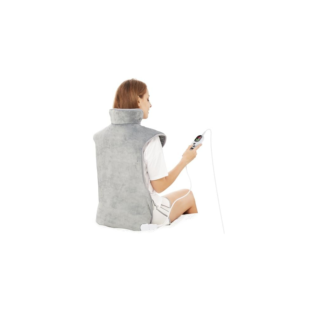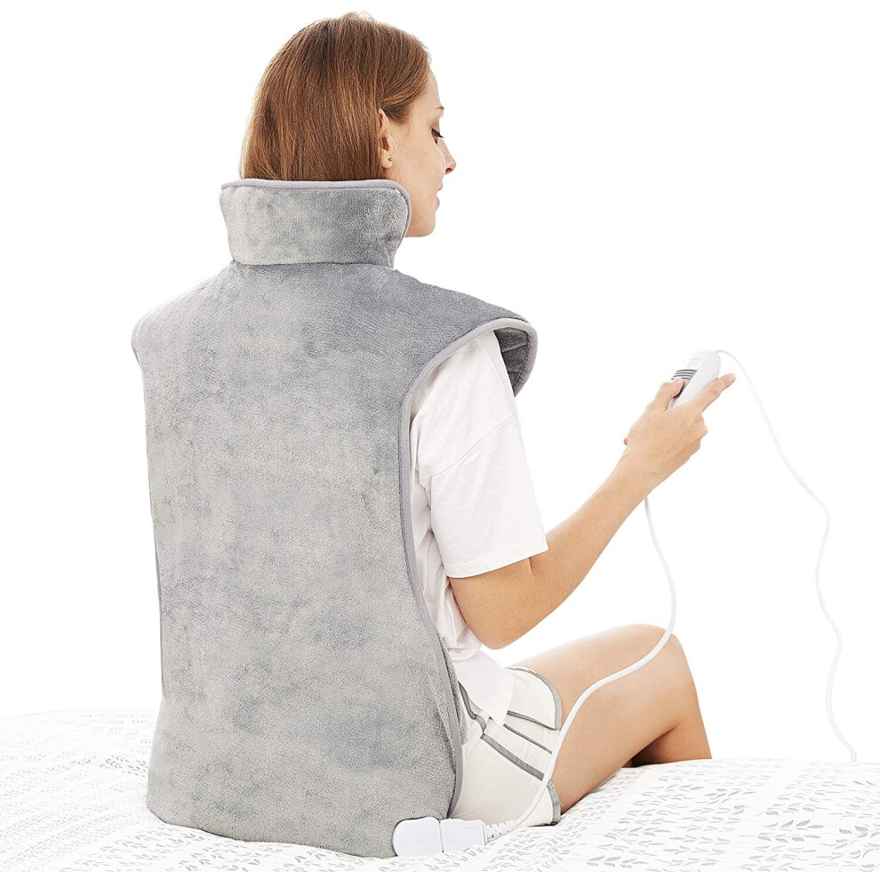 Mia&Coco Electric Heating Pad for Back Neck and Shoulders Pain Relief, (60x100cm) Heated Warmer Fast-Heat Hot Therapy Warp with Waist Strap, 6 Heat Levels, Auto-Off Timer - Comfort Grey