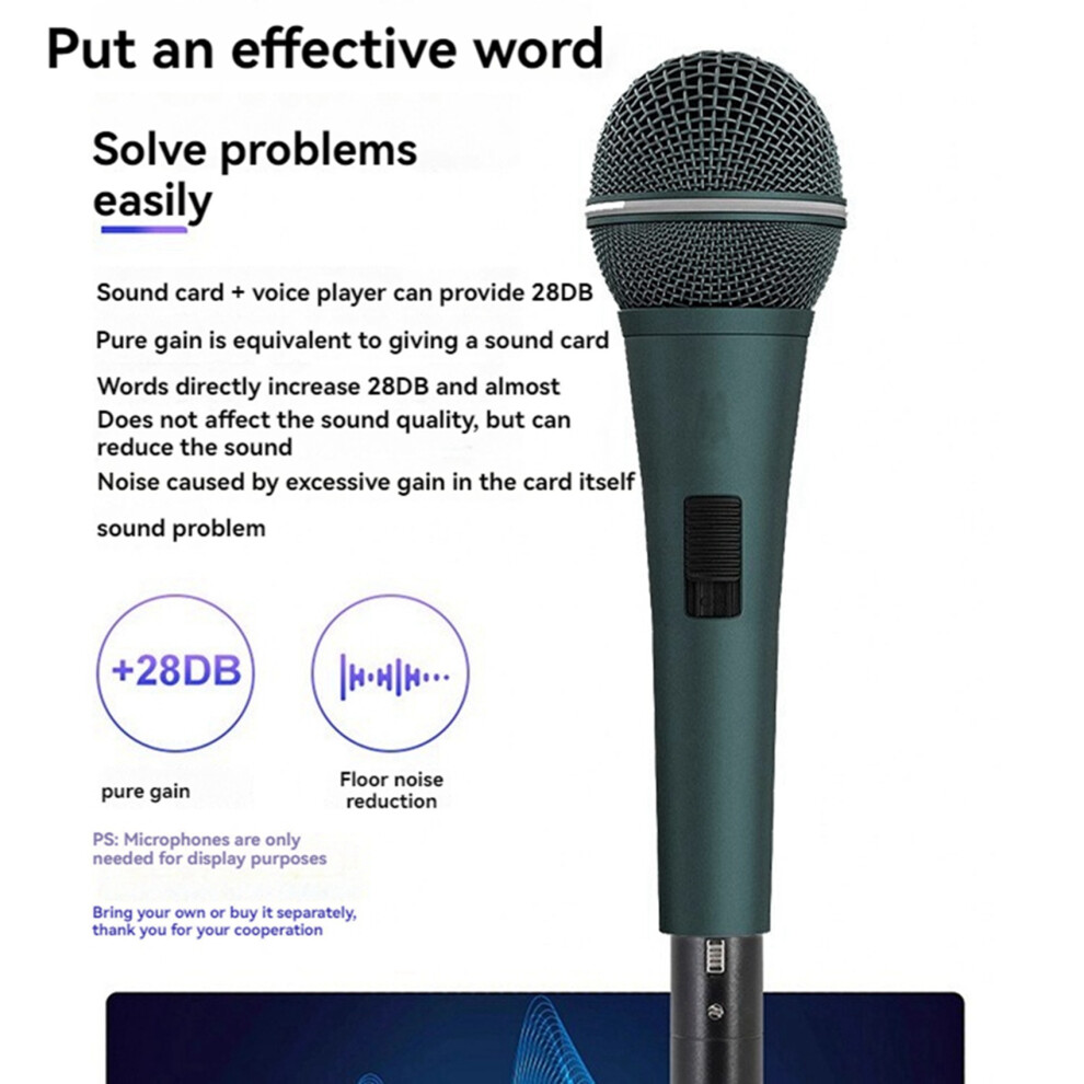 Microphone Preamp with Adjustable Gain 020dB, Rechargeable Portable Mic Amplifier for Singers and DJs