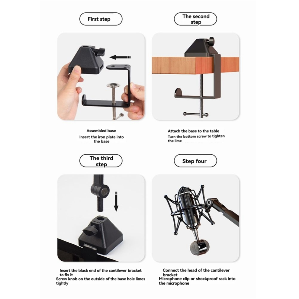 Adjustable Desk Clamp Microphone Mount Holder Plastic Metal Base CClamp Table Clip ScratchResistant Mic Arm Compatible With Various Mic