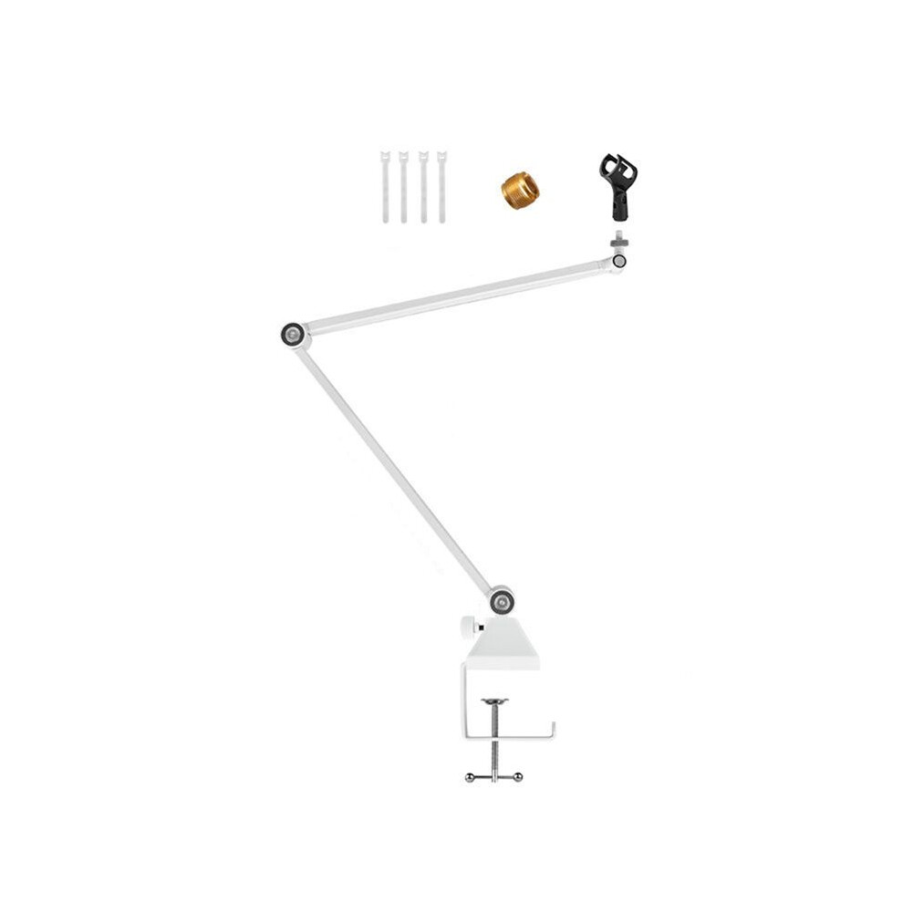 Mic Arm, 360 Rotatable Microphone Boom Arm Mic Stand, with Mic Clip , 3/8In to 5/8In Adapter Microphone Stand White
