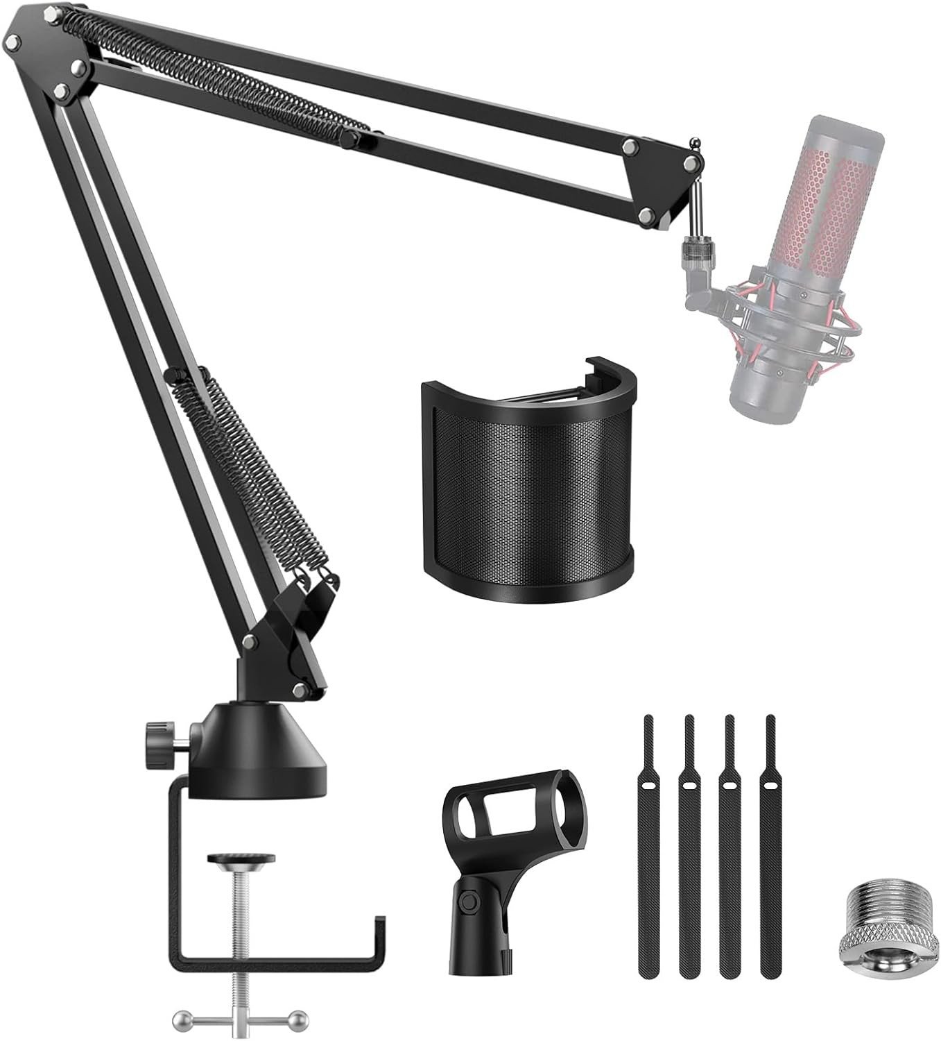 TONOR Microphone Boom Arm, Adjustable Microphone Stand Mic Arm Mic Clip Holder,