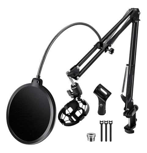 YOUSHARES White Mic Boom Arm Stand with Pop Filter -