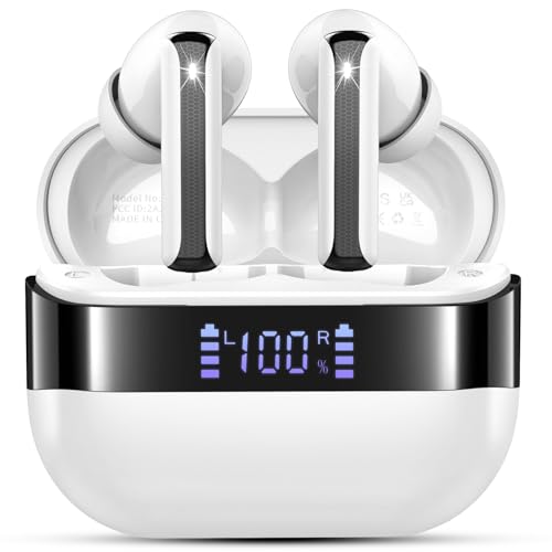 Btootos Wireless Earbuds, Bluetooth 5.3 Headphones In Ear with 4 ENC Noise Cancelling Mic, 2025 New Bluetooth Earphones Mini Deep Bass Stereo Sound, 36H Playtime LED Display Wireless Earbuds White