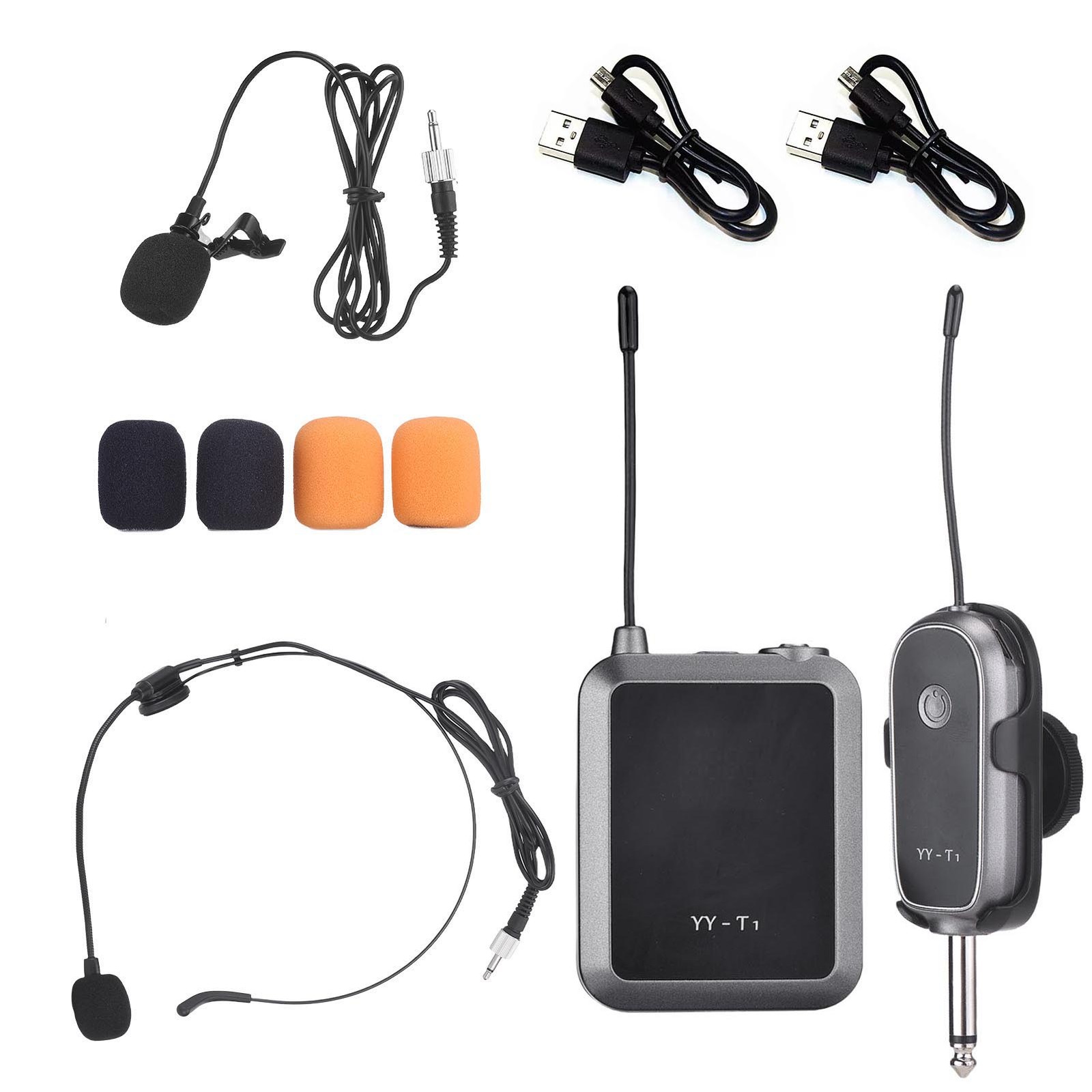 Wireless Mic System UHF Mic Kit With Headset/Clip-on Mic 32 Channels Waist- HEN