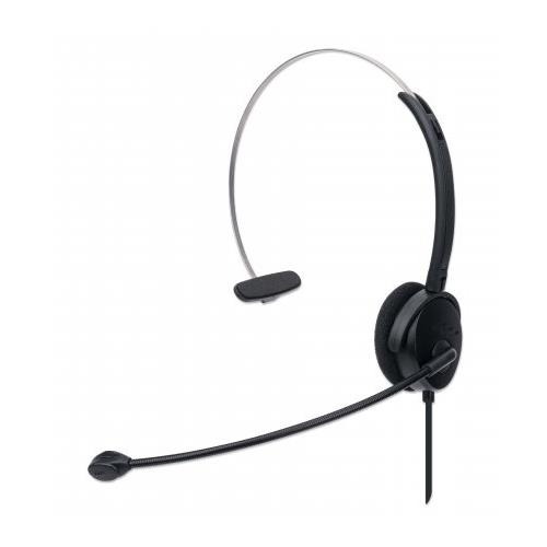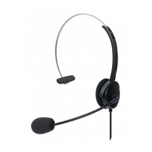 Manhattan Mono On-Ear Headset (USB) Microphone Boom (padded) Retail Box Packaging Adjustable Headband In-Line Volume Control Ear Cushion USB-A for both sound and mic use cable 1.5m Three Year Warranty