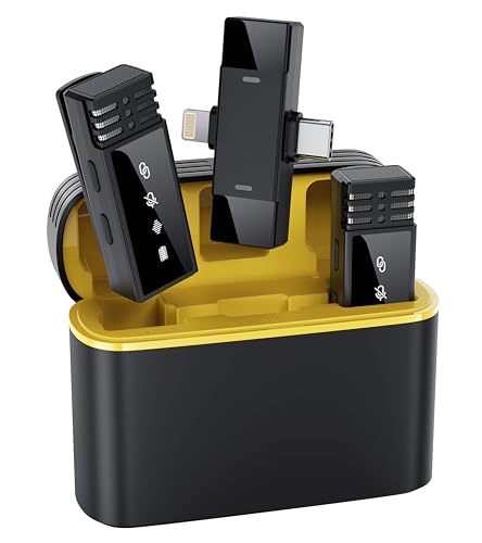 Qhot Wireless Lavalier Microphone for iPhone | Mini Bluetooth Clip-On & Lapel Mic Phone with Noise Cancelling & Lightning iPad & USB-C Android Mobile for Video Recording Vlogging Tiktok Podcast