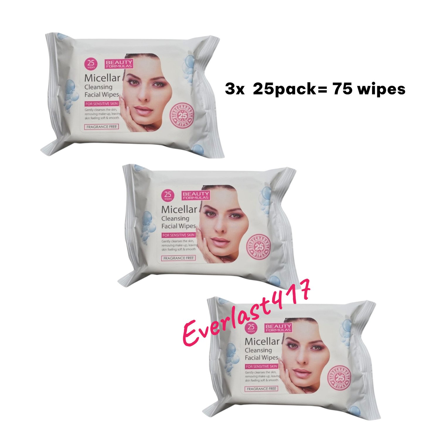 3X 25=75 Wipes Micellar Cleansing Facial Wipes For Sensitive Skin,Fragrance free