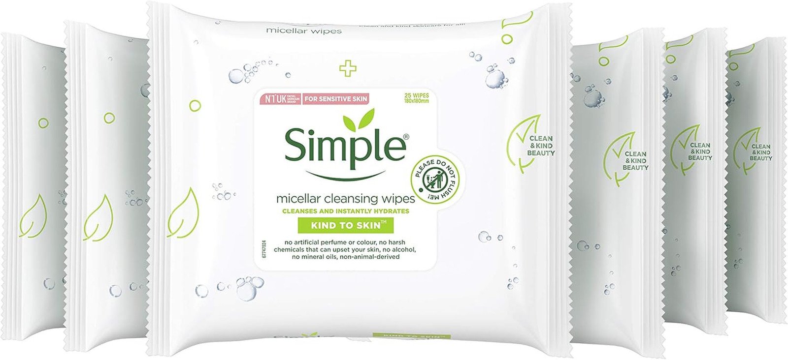 Simple Kind to Skin Micellar Cleansing Wipes 25's - Pack of 6