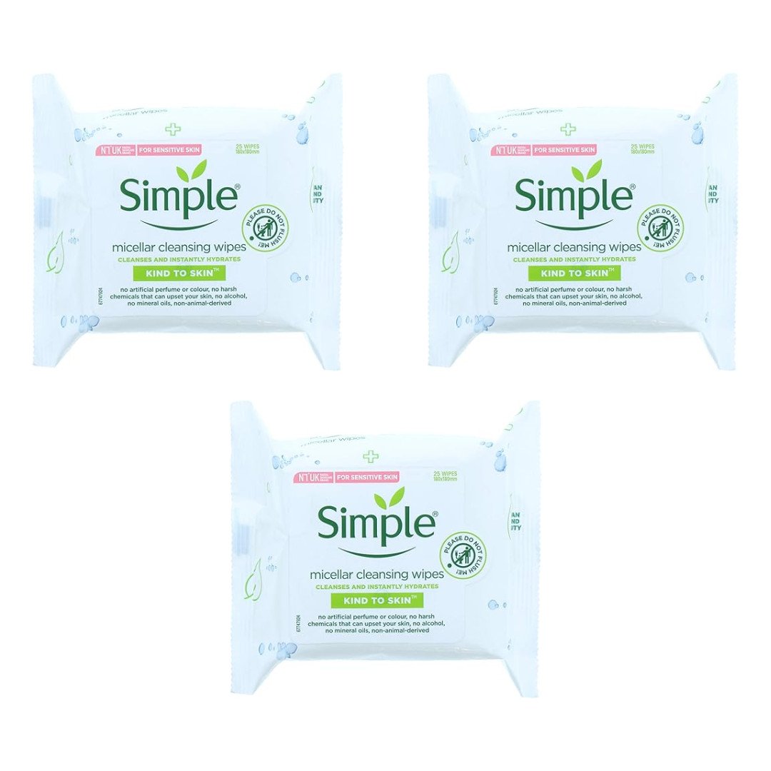 Simple Kind to Skin Micellar Cleansing Wipes 25's - Pack of 3