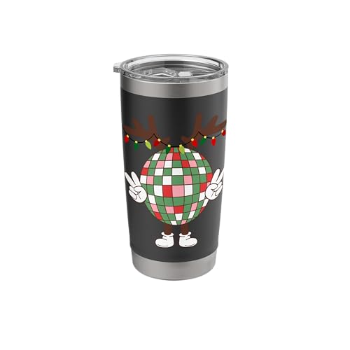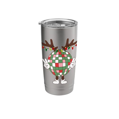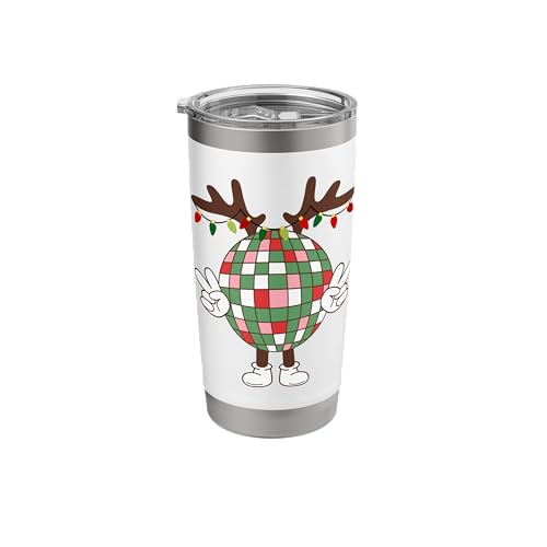 Christmas Disco Ball with Antlers, Peace Sign, Reindeer Stainless Steel Insulated Tumbler