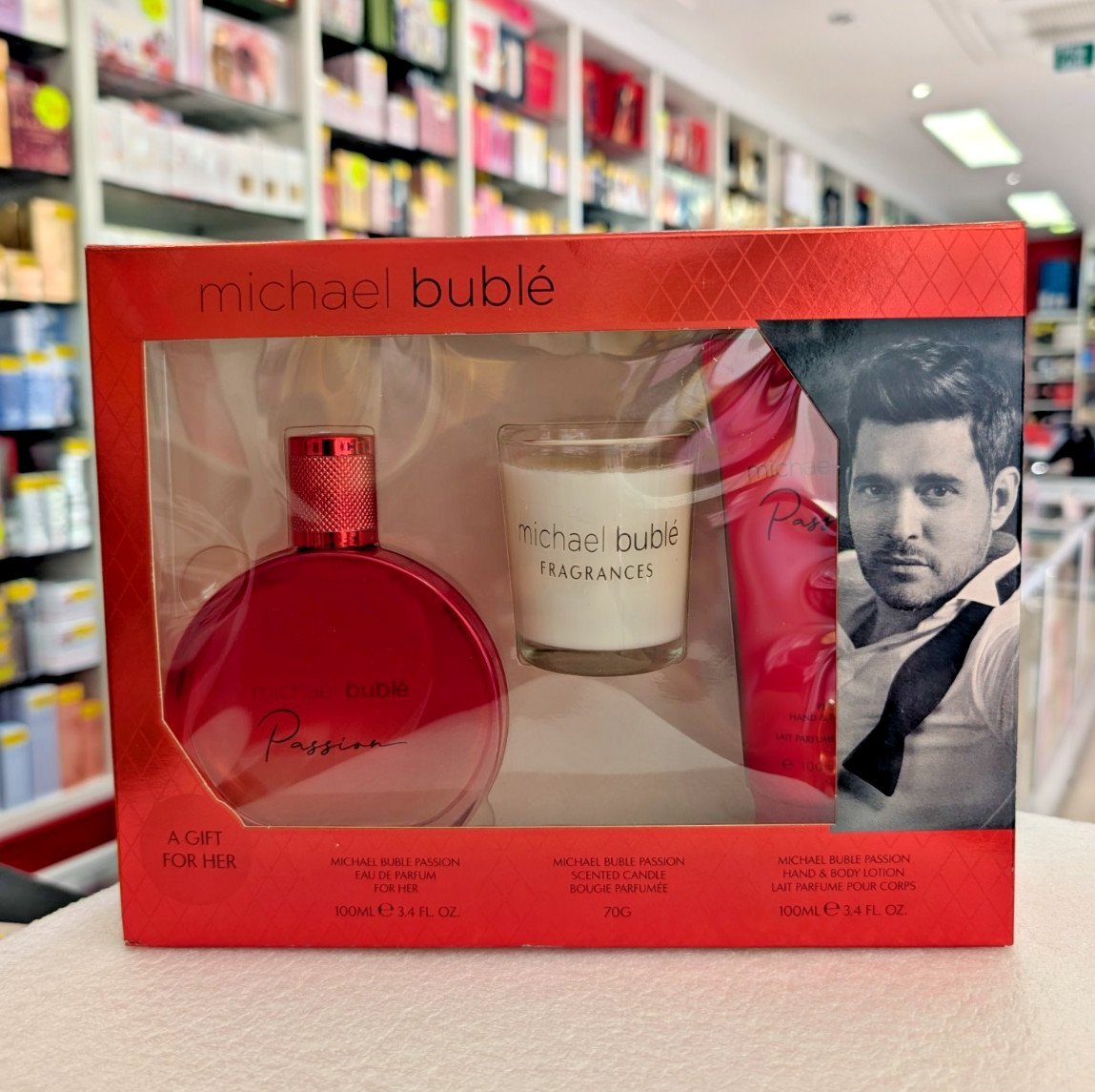 Michael Buble Passion 100ml Eau de Parfum, Body Lotion, Scented Candle Gift Set for Women