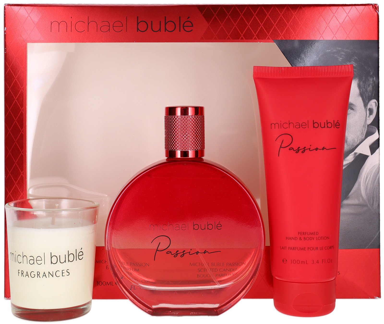Passion by Michael Buble Women Set:EDP+Candle+Hand & Body Lotion 3.4+2.5+3.4 New