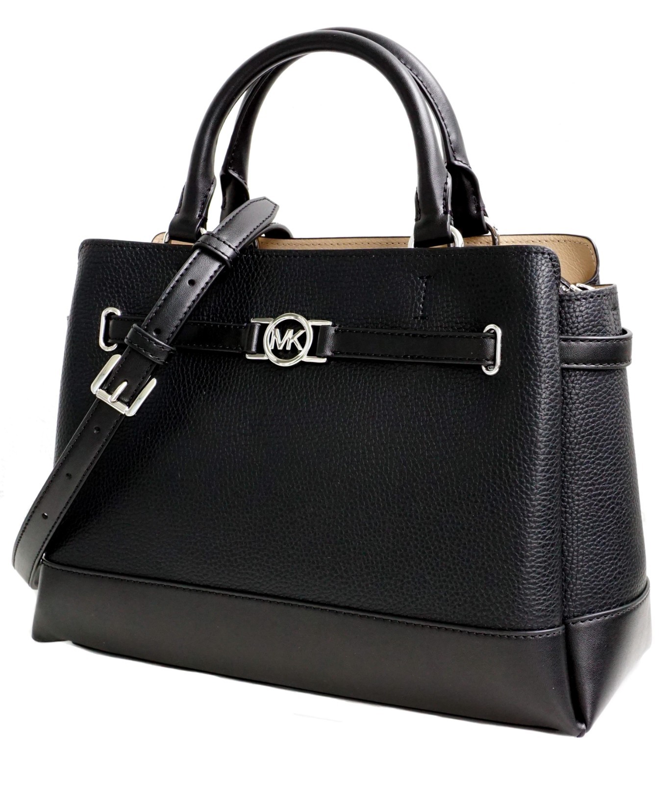 Michael Kors Bag School Bag Reed LG CZ Belted Satchel Black Leather New