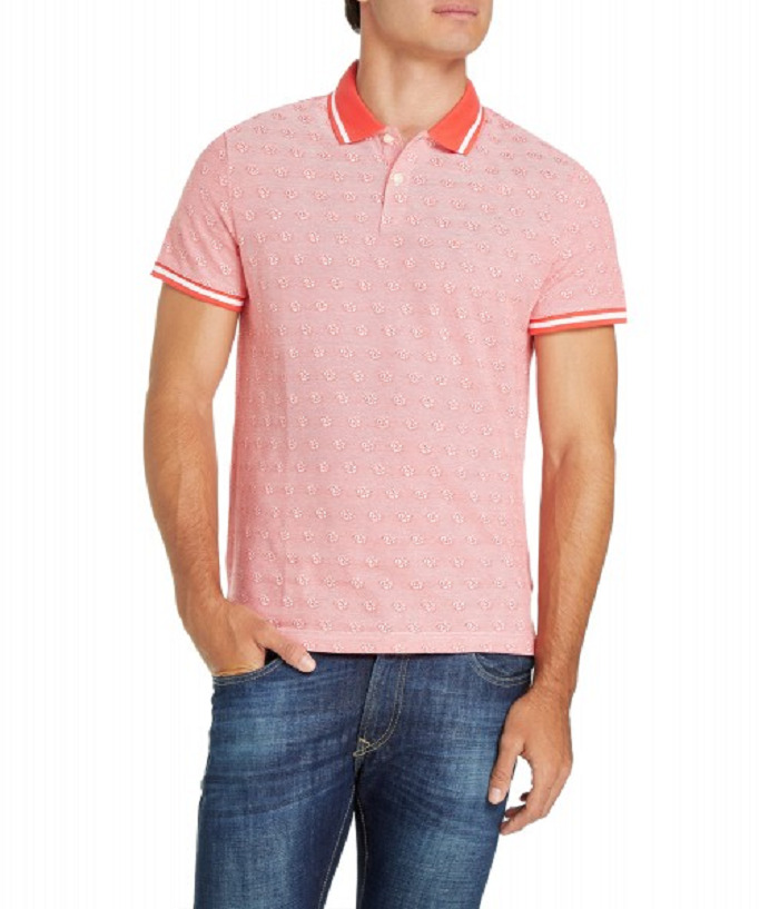 Michael Kors Floral Print Jacquard Short-Sleeve Polo Shirt sea coral [XL]