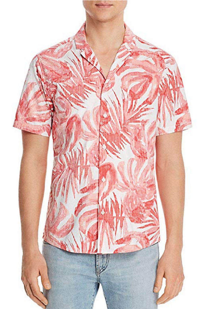 Michael Kors Mens Shirt Leaf Print Slim Fit Button Up, Sea Coral, XL
