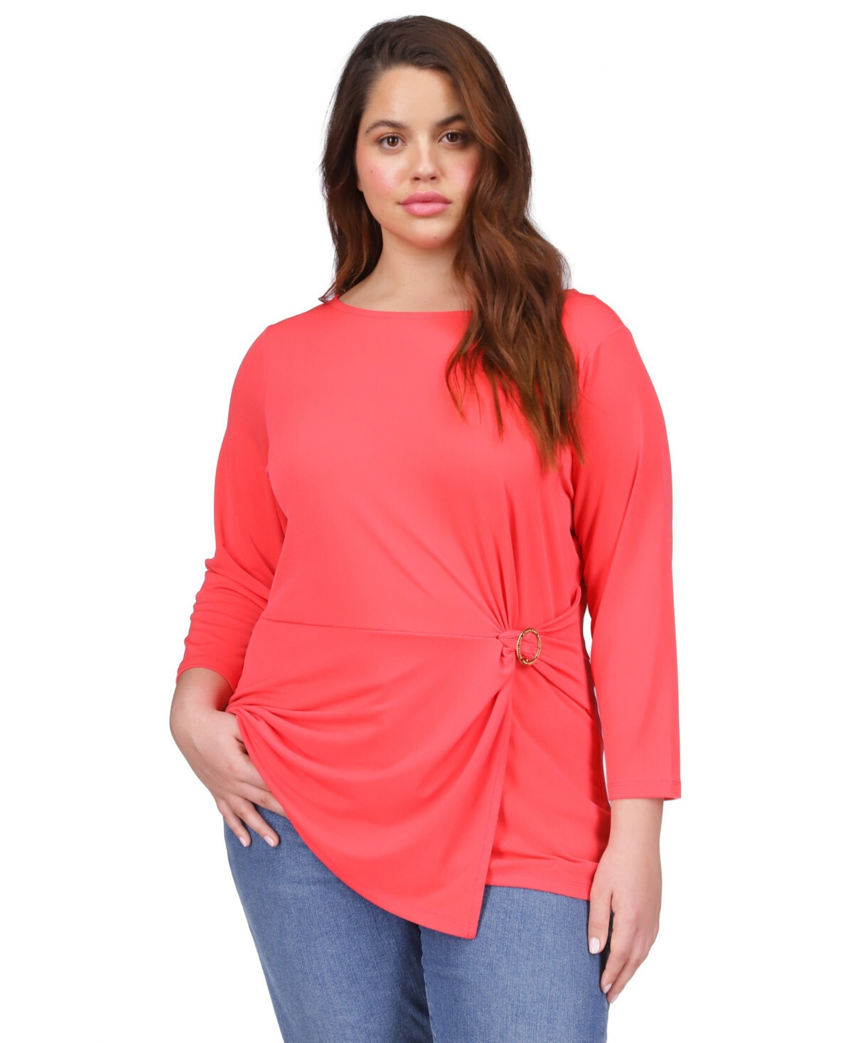 Michael Kors Plus Size Ring Twist 3/4-Sleeve Top, Sea Coral, size 1X