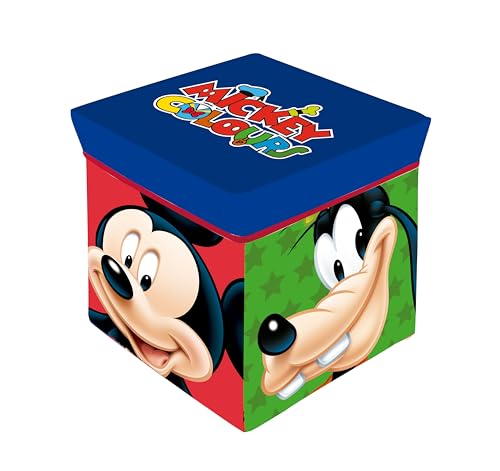 Superdiver Foldable Storage Box with Lid Officially Licensed Disney Mickey Mouse and Friends - Kids Stool with Boot for Storing Things - Toy Organizer for ba