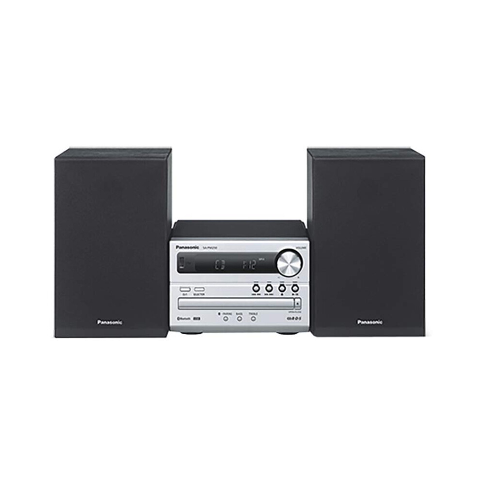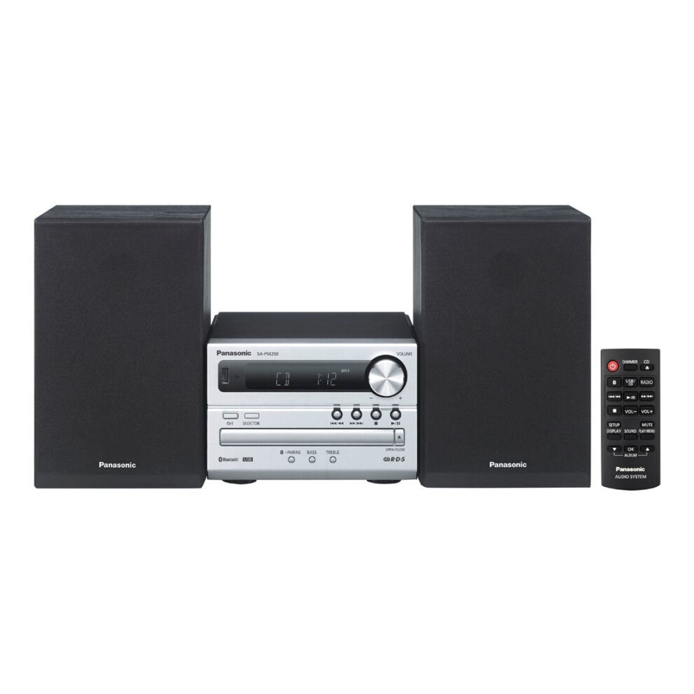 Panasonic SC-PM250EB-S Micro HiFi Compact Stereo System with FM Radio with RDS, 20W Output Power, MP3 & CD Player, USB, Bluetooth, Silver