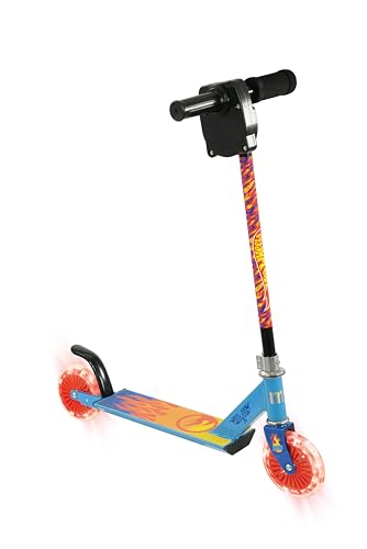 Hot Wheels Kids Inline Scooter | Officially Licensed Boys or Girls with Realistic Revver Sounds and Light Up Wheels | Blue Childrens
