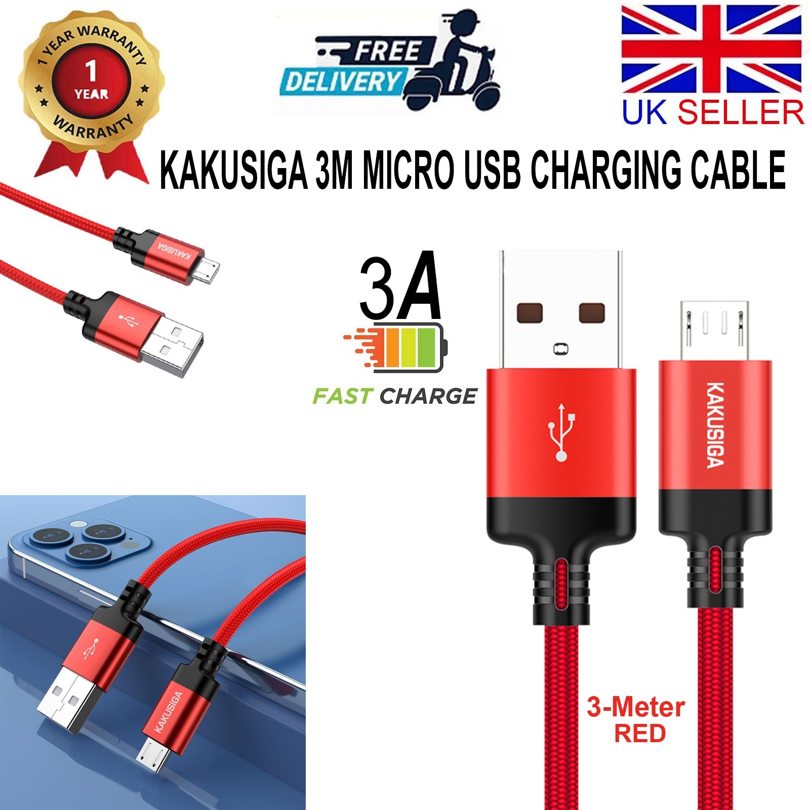 3M Extra Long Fast Micro USB Charger Cable For Xbox One Controller Play & Charge