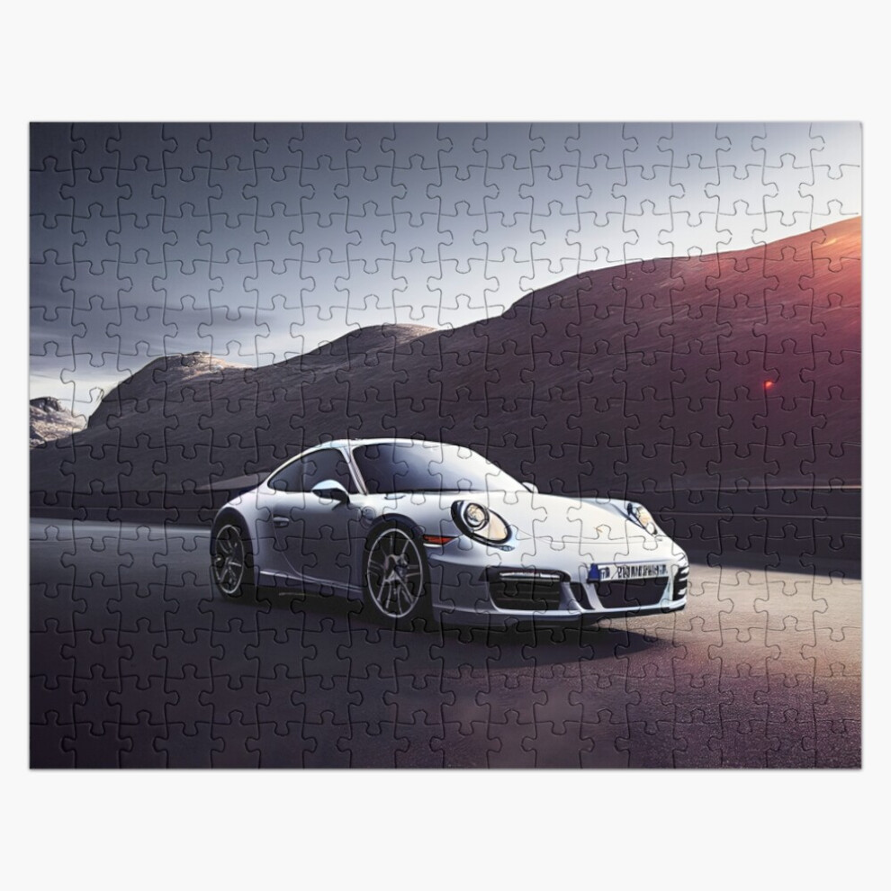 (Silver Porsche Carrera 911 in Norway (Micromachines style)=1662) Jigsaw Puzzle Wooden 300-Piece for Adults Kids Seniors- Home Decor Family Activity G