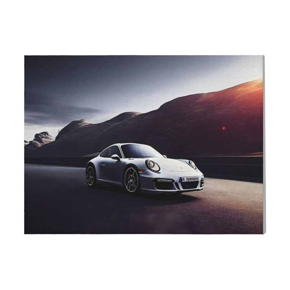 (Silver Porsche Carrera 911 In Norway (Micromachines Style)=1662) Canvas Print DIY Framed Kit Wall Art for Living Room Bedroom Retro Farmhouse Decor 1