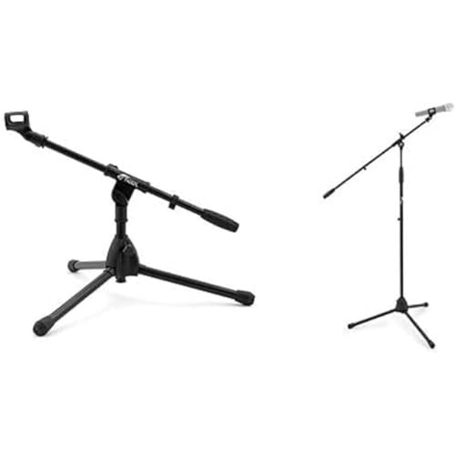 Tiger MCA49-BK Low Level Floor & Desktop Boom Microphone Stand – Bass Drum, Guitar Cab Mic Stand + Tiger MCA68-BK Microphone Boom Stand, Mic Stand with Free Mic Clip, Black