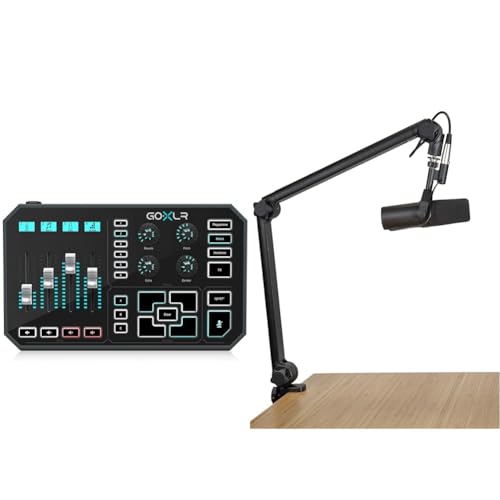 TC Helicon GoXLR 5-Channel USB/XLR Mixer with Motorized Faders, Studio Quality MIDAS Preamp, Sampler, Voice FX, and Gator Frameworks Deluxe Desk-Mounted Broadcast Microphone Boom Stand