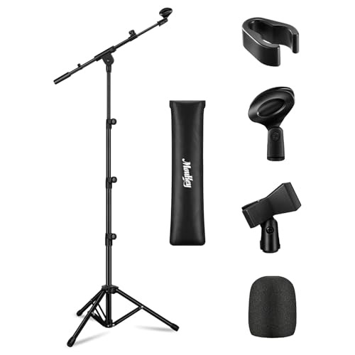 Moukey Microphone Stand, Tripod Boom Arm Floor Mic Stand, Height Adjustable, Dual-use, with 2 Mic Clips, Foam Cover, 4 Cable Holders and Carrying Bag, MMs-3