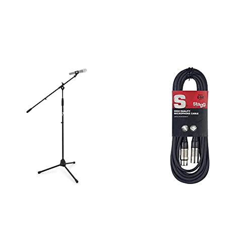 Tiger MCA68-BK Microphone Boom Stand, Mic Stand with Free Mic Clip - Black & Stagg SMC6 6 metre standard microphone cable