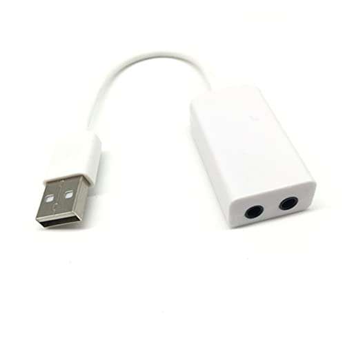 jojofuny USB 2.0 Sound Card Adapter with 7.1 Channel Surround Sound Audio Splitter for 3.5mm Headphone Microphone Bus-Powered Plug and Play for Notebook Laptop Speaker Box Tablet (White)