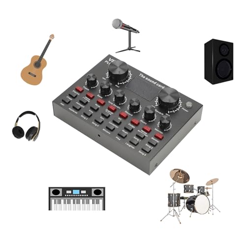 Live Sound Card with Built in Microphone, Mixer with Plug And Play, Support Multiple Device Connections, Voice Changer for Live Streaming Karaoke