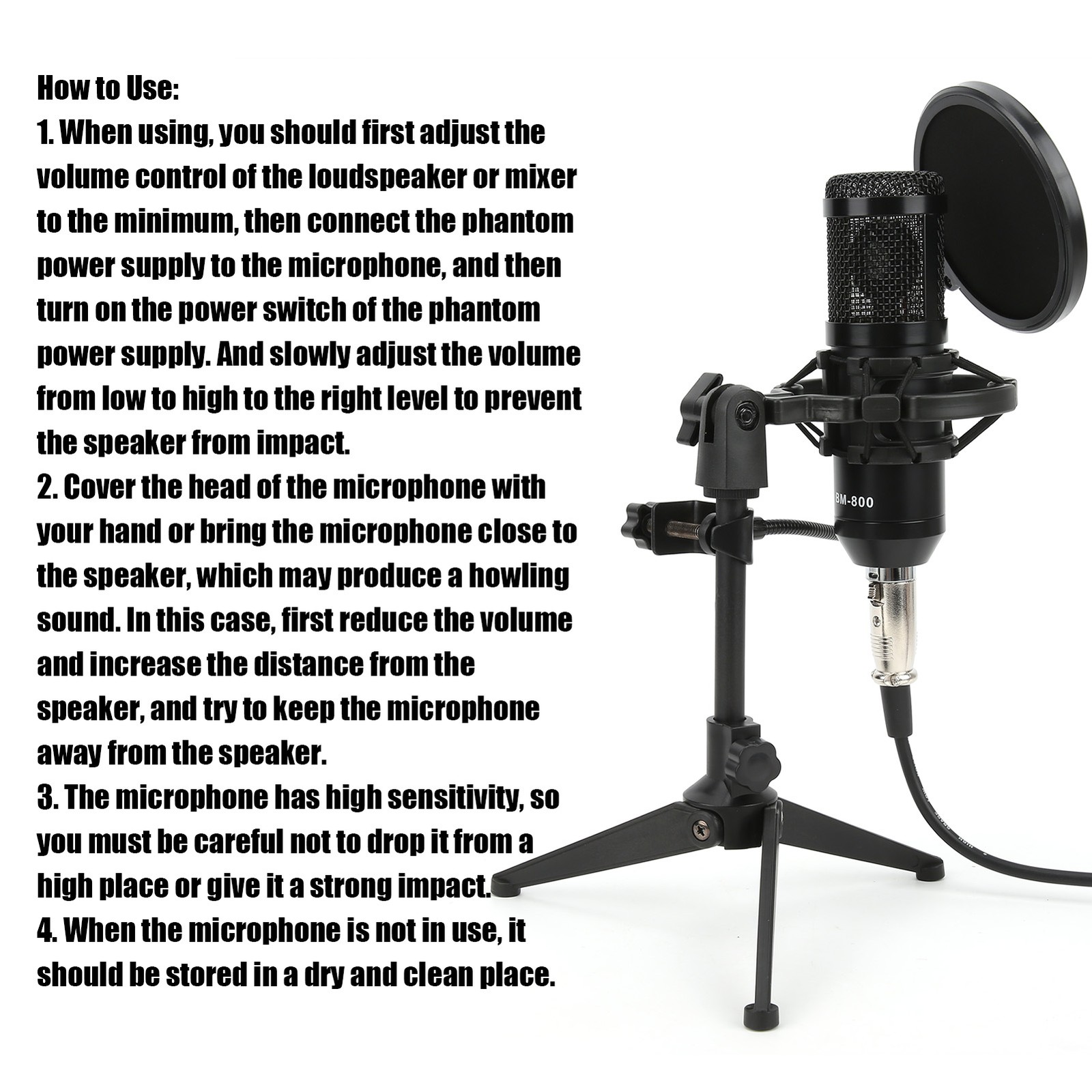 Condenser Microphone 3.5mm Plug With Adjustable Tripod Set Kit For Broadcast BLW