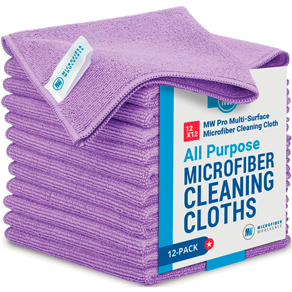 12"""" x 12"""" Buff Pro Multi-Surface Microfiber Cleaning Cloths | Purple - 12 Pack | Premium Microfiber Towels for Cleaning Glass Kitchens Bathro