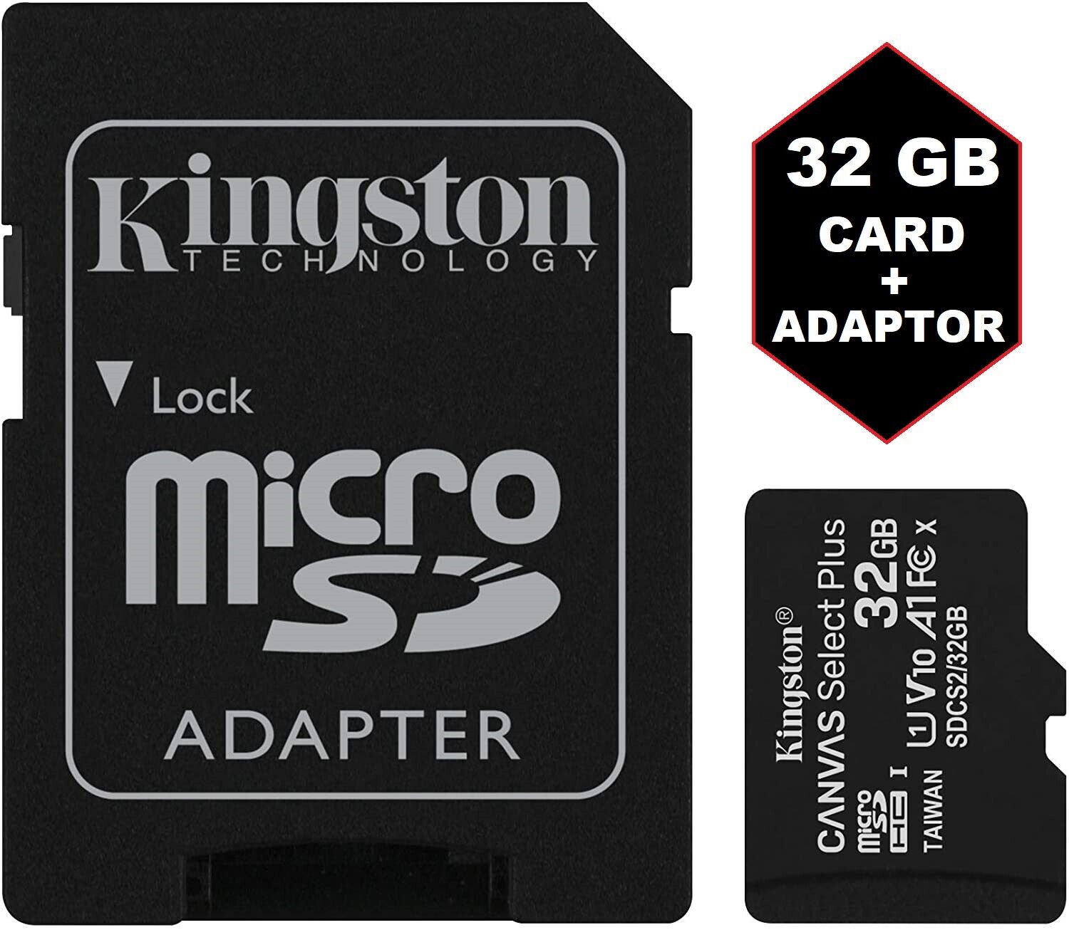 KINGSTON Micro SD Card SDHC SDCS2 Memory Card TF Class 10 32GB + SD Adapter