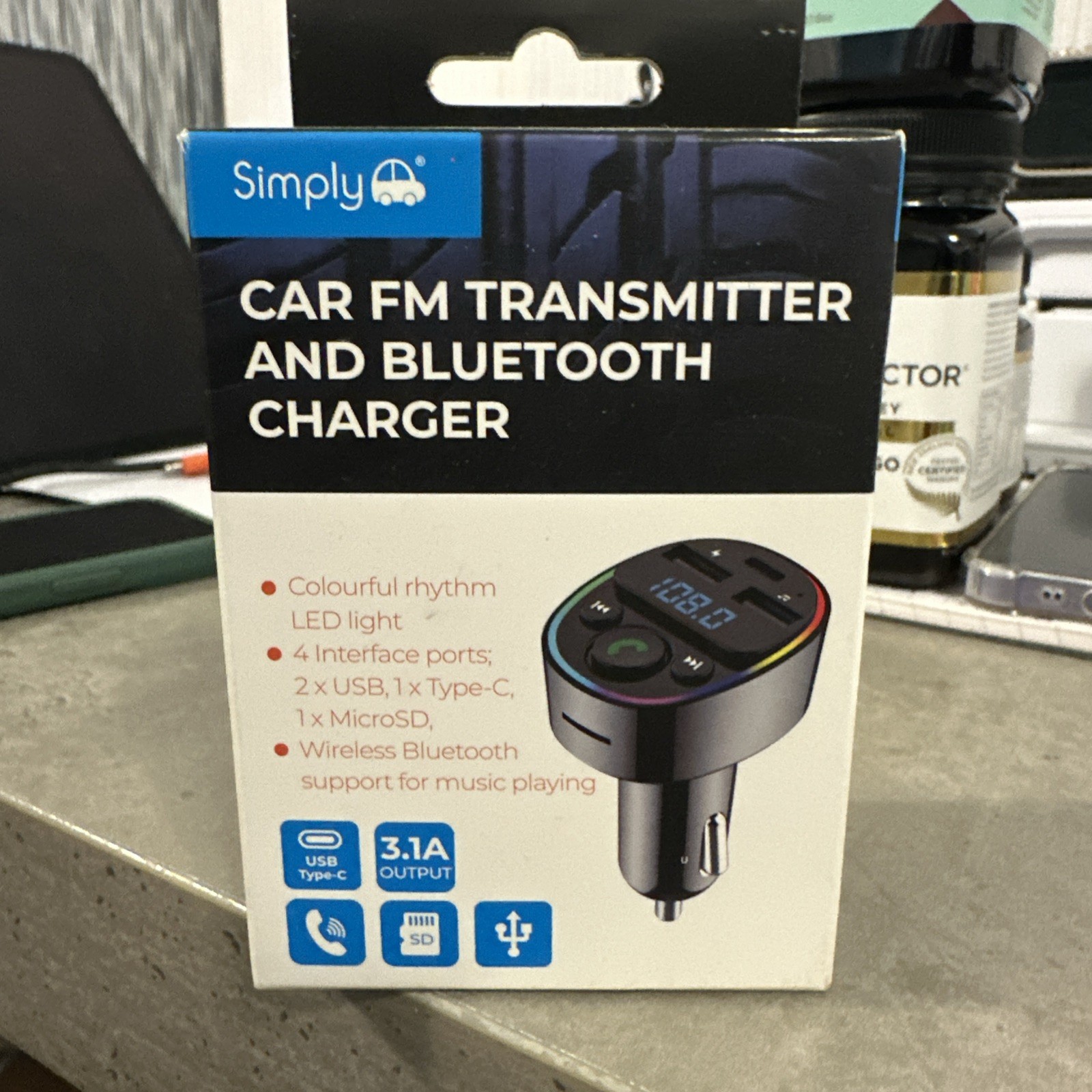Simply Auto Car FM Transmitter Bluetooth Charger Adapter USB Type-C MicroSD