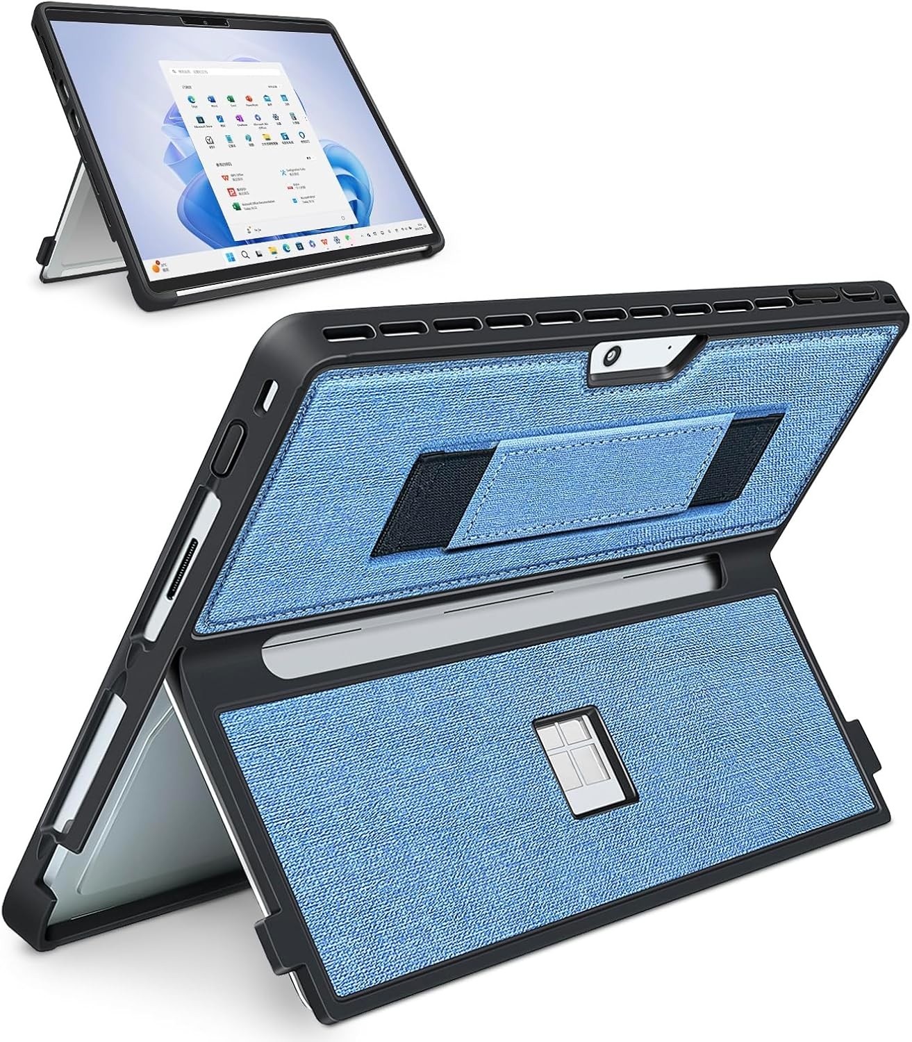 MoKo Case Compatible with Microsoft Surface Pro 11, Surface Pro 10, Surface Pro 9 13 Inch, All-in-One Protective Rugged Cover with Hand Strap, Compatible with Type Cover Keyboard, Blue
